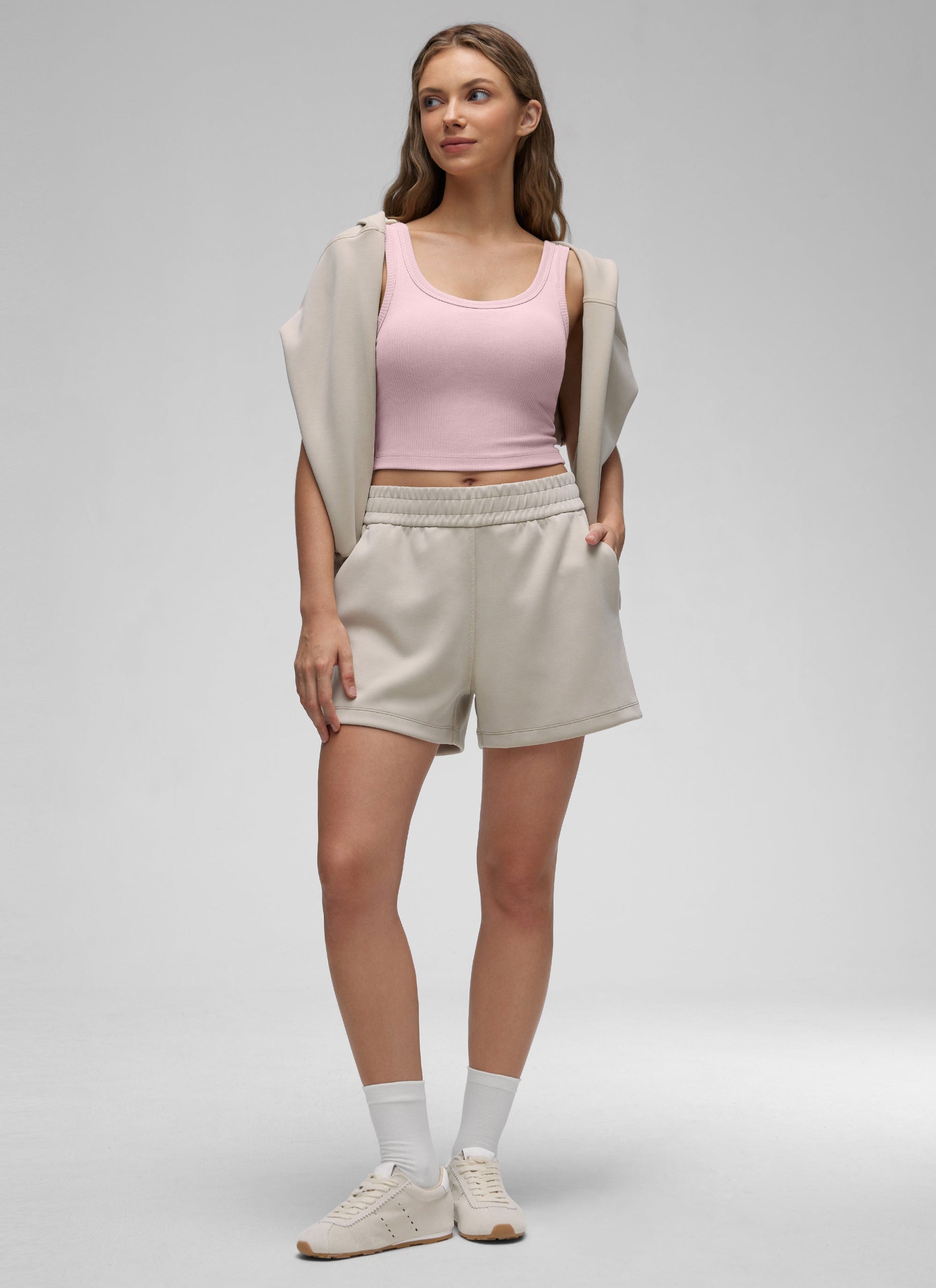 Slightly thicker ribbed fabric that's breathable, stretchy & moisture-wicking. Light compression and light support. U-shaped neckline for better coverage. Camisole style, suitable for workout and outside wear.