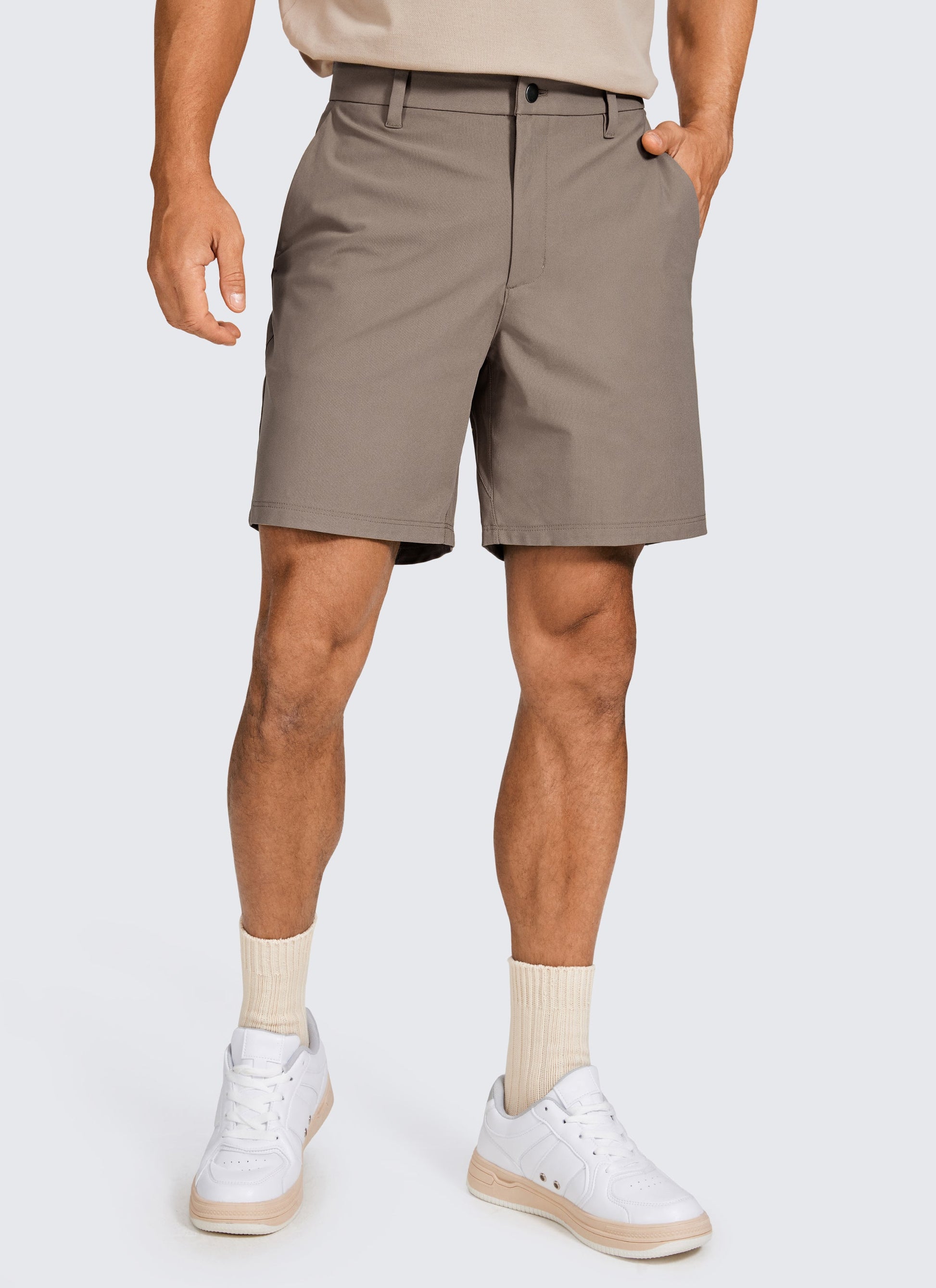 These men's golf shorts are made of smooth, stretchy, and lightweight fabric, allowing you to move comfortably all day. Breathable, wrinkle-free blend and quick dry. Multi-pockets to store mobile phones, cards, and keys. Great as golf shorts or daily wearing.