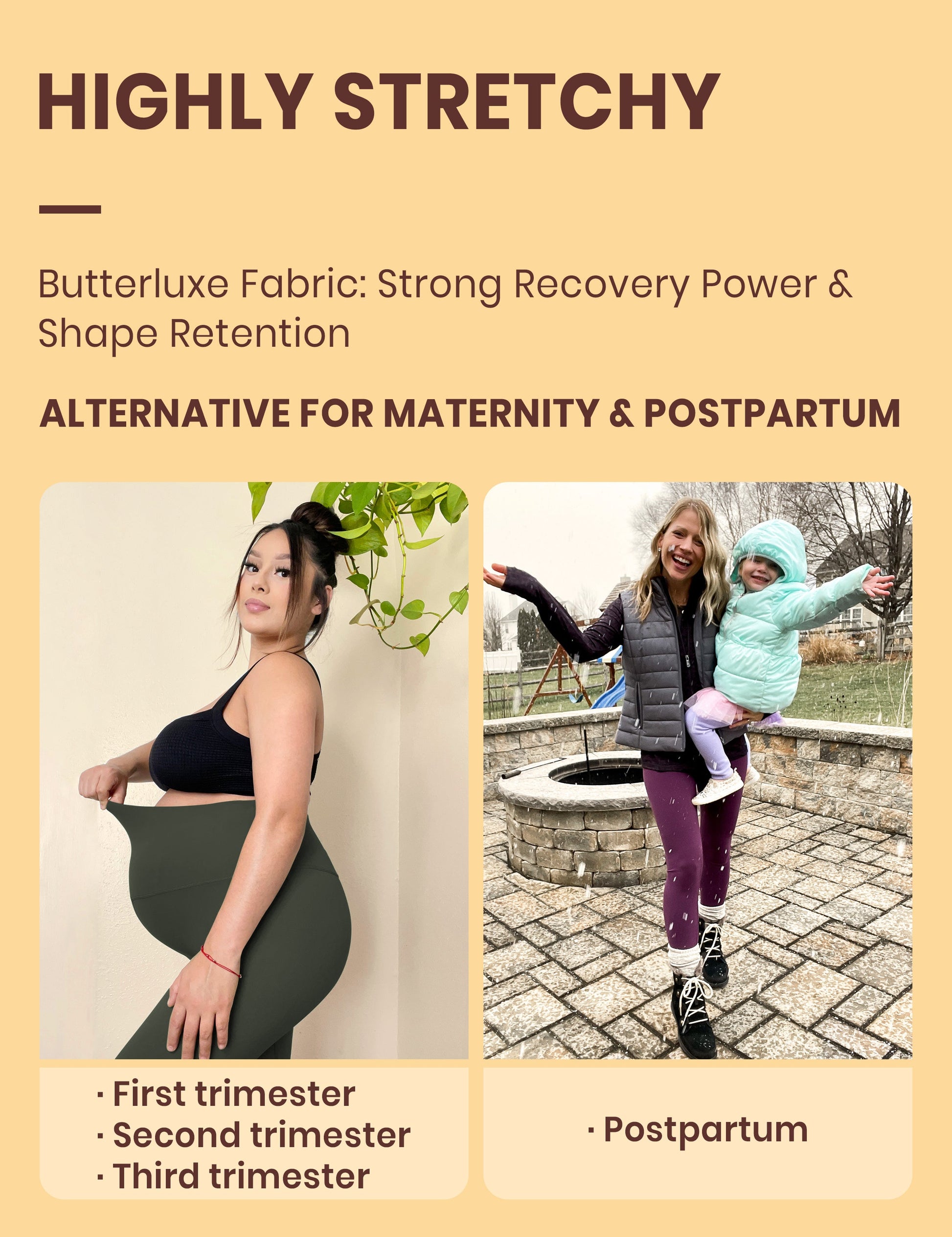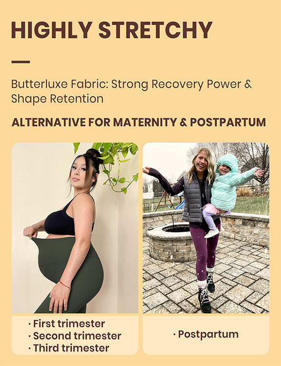 Butterluxe collection use high end fabric, engineered for luxurious comfort and made for all ways you move. Super high-waisted, seamless waistband for no dig-in tummy control.Hidden waistband pocket for more convenience. Due to its highly stretchness and high recovery power, making it a perfect maternity leggings alternative for 1st & 2nd trimester.