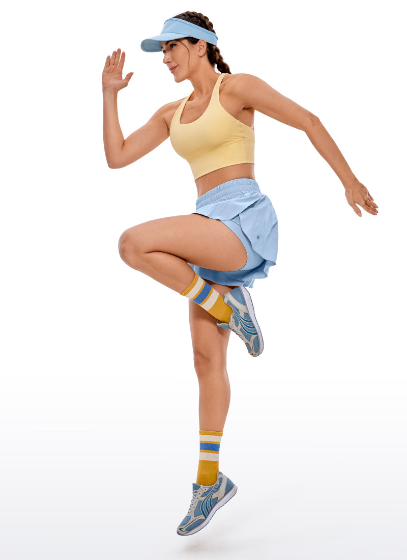 These 2-in-1 flowy fitness shorts will keep you trendy while the workout. Designed with an elastic waistband and inner shorts, the high-rise athletic shorts is chic but also super functional. Perfect for workout, running, golf, tennis or daily wearing.