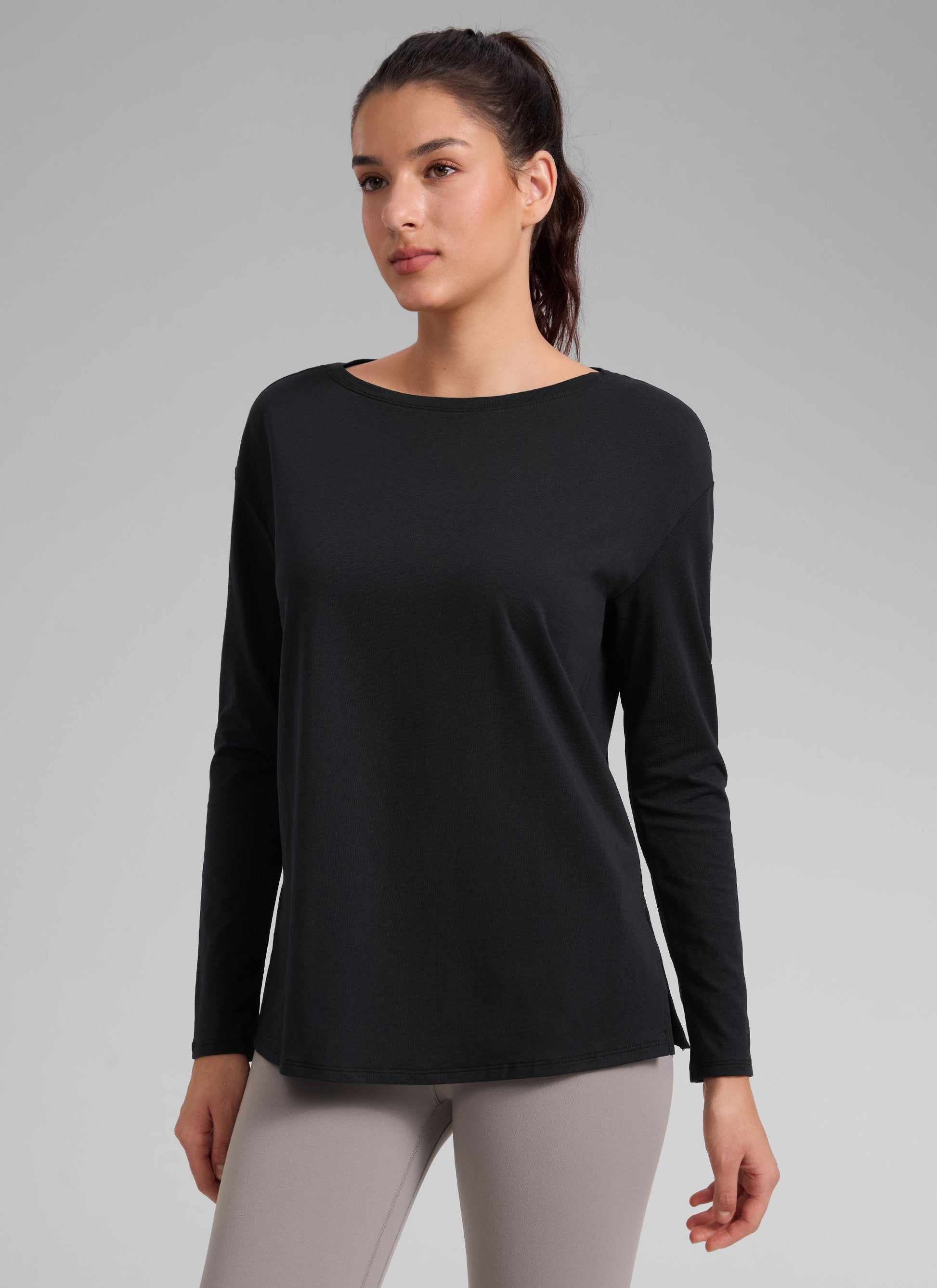 Cotton-Blend Boat Neck Long SleeveCotton-Blend Boat Neck Long Sleeve