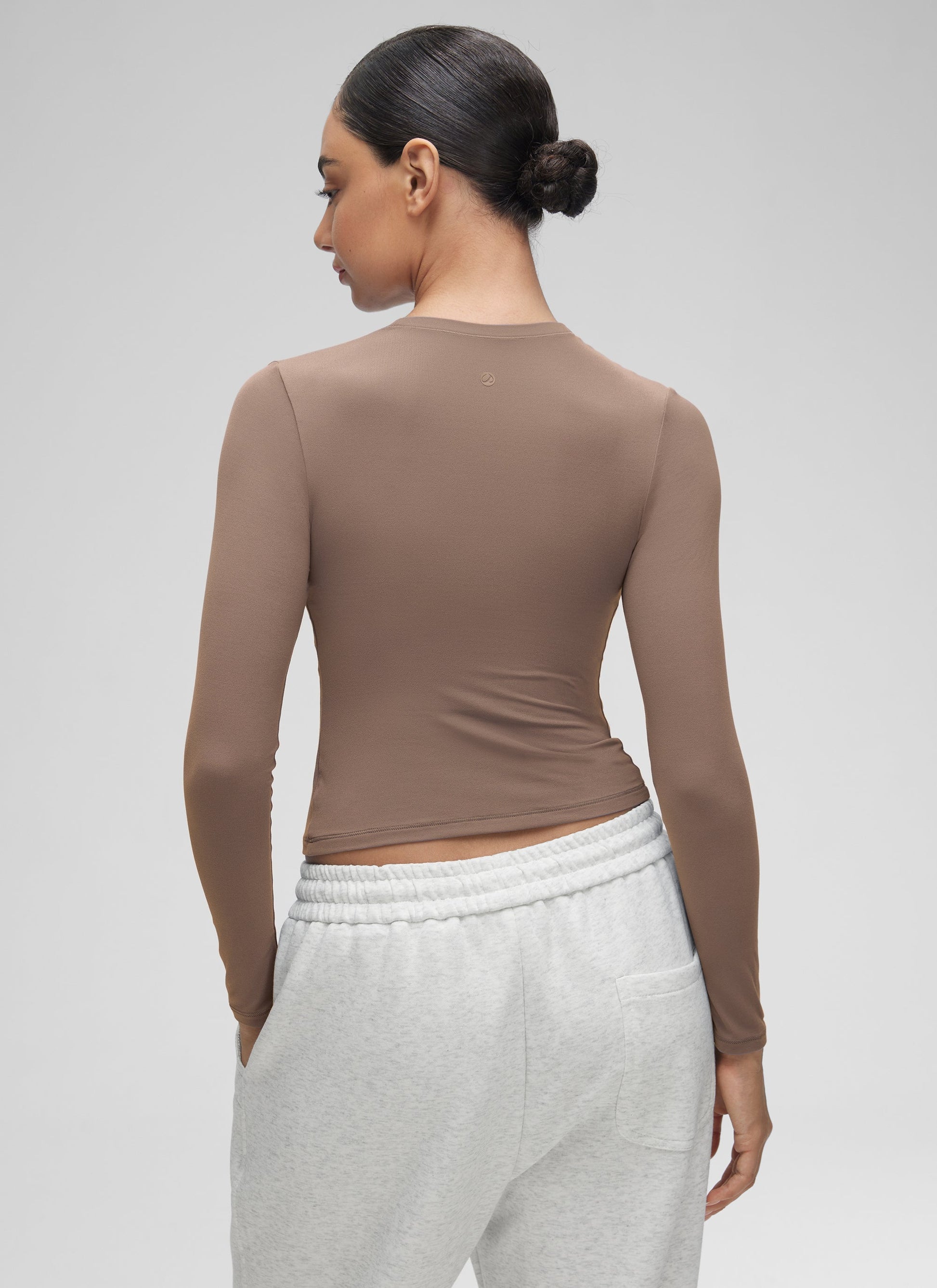 Softembrace collection features soft against skin with stretch and decent support, ideal for everyone essentials. This basic long sleeve shirts with tight design ensures a snug look, perfectly matches with your cover or wear it alone.